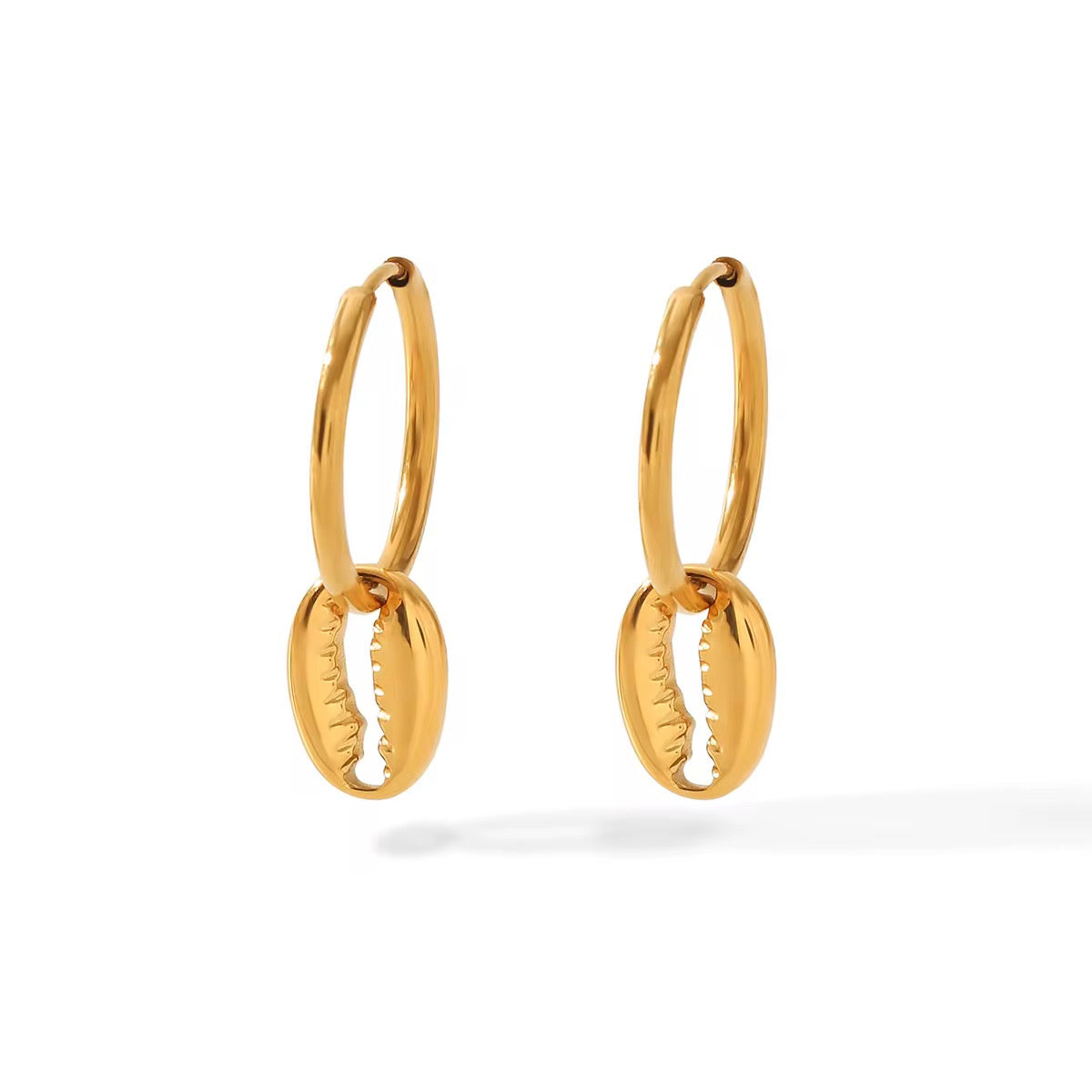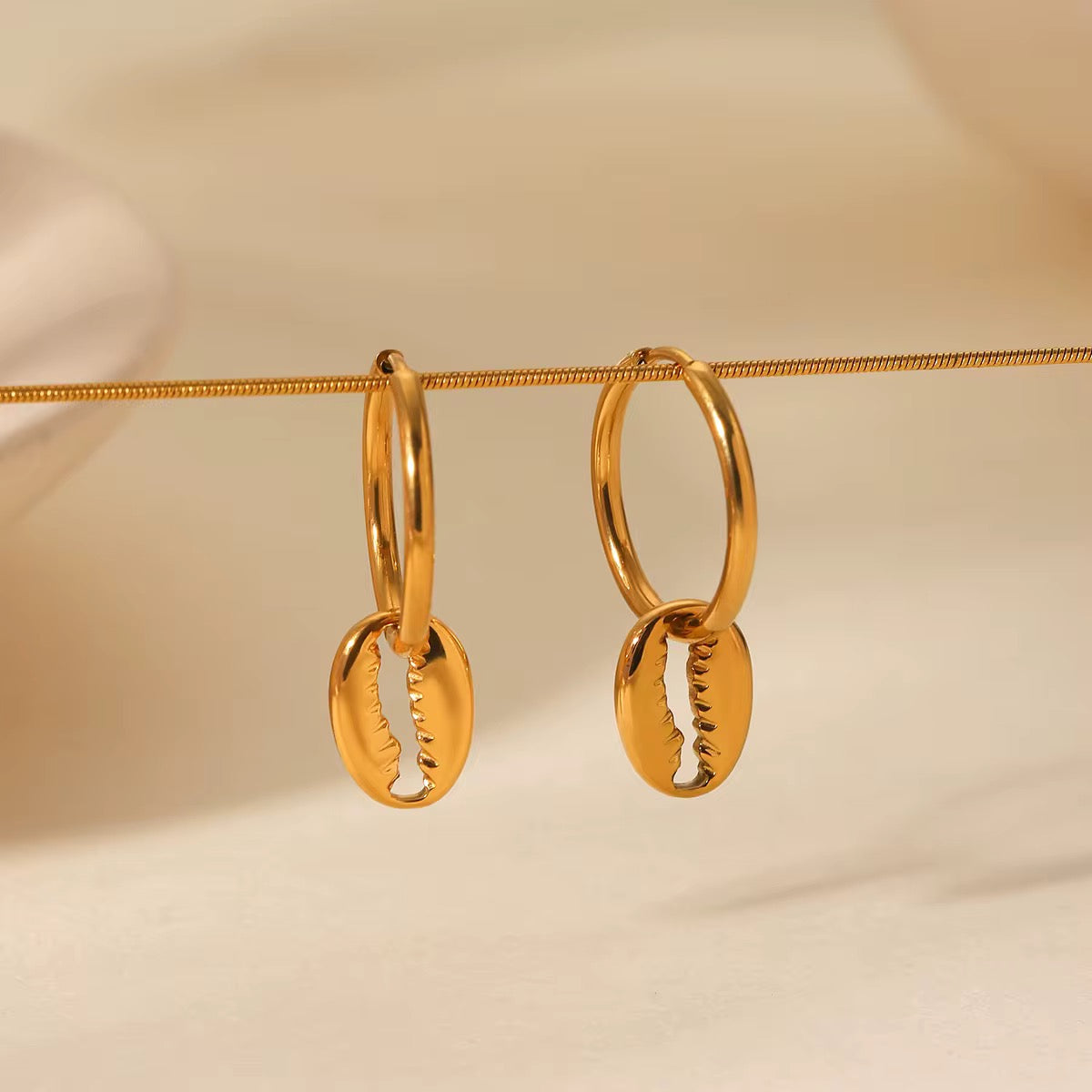 Effortless, golden, and endlessly wearable — The Island Hoops are your go-to piece for that sun-kissed, beach-to-bar look. Featuring polished gold cowrie shells on sleek hoops, they embody the spirit of the sea and the glow of endless summer days.