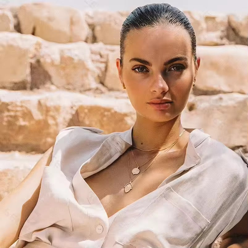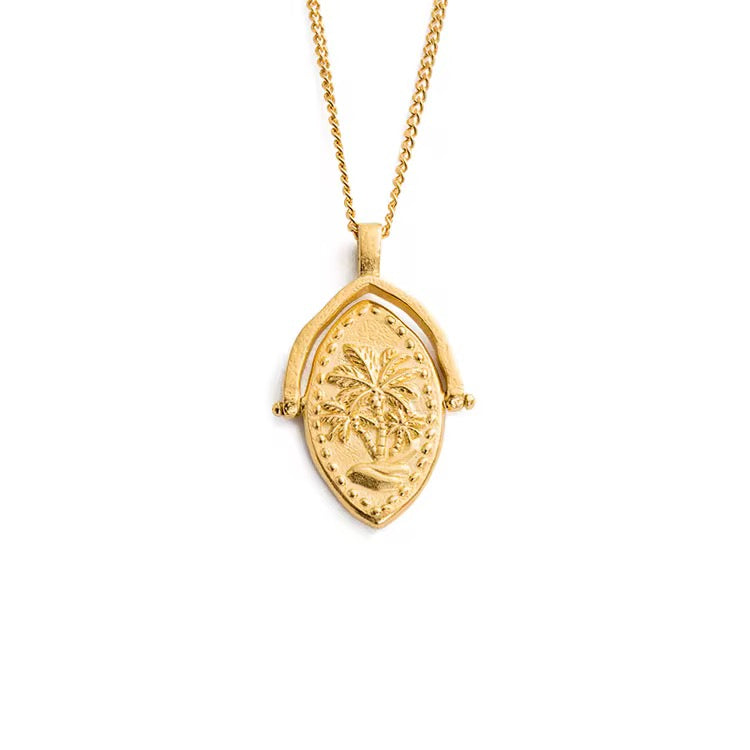 The Tempest Isle Necklace features a bold gold-toned pendant suspended on a fine chain — a piece that channels the power and mystery of the sea. Designed to stand out while remaining effortlessly wearable, it’s perfect for layering or wearing solo as a statement.